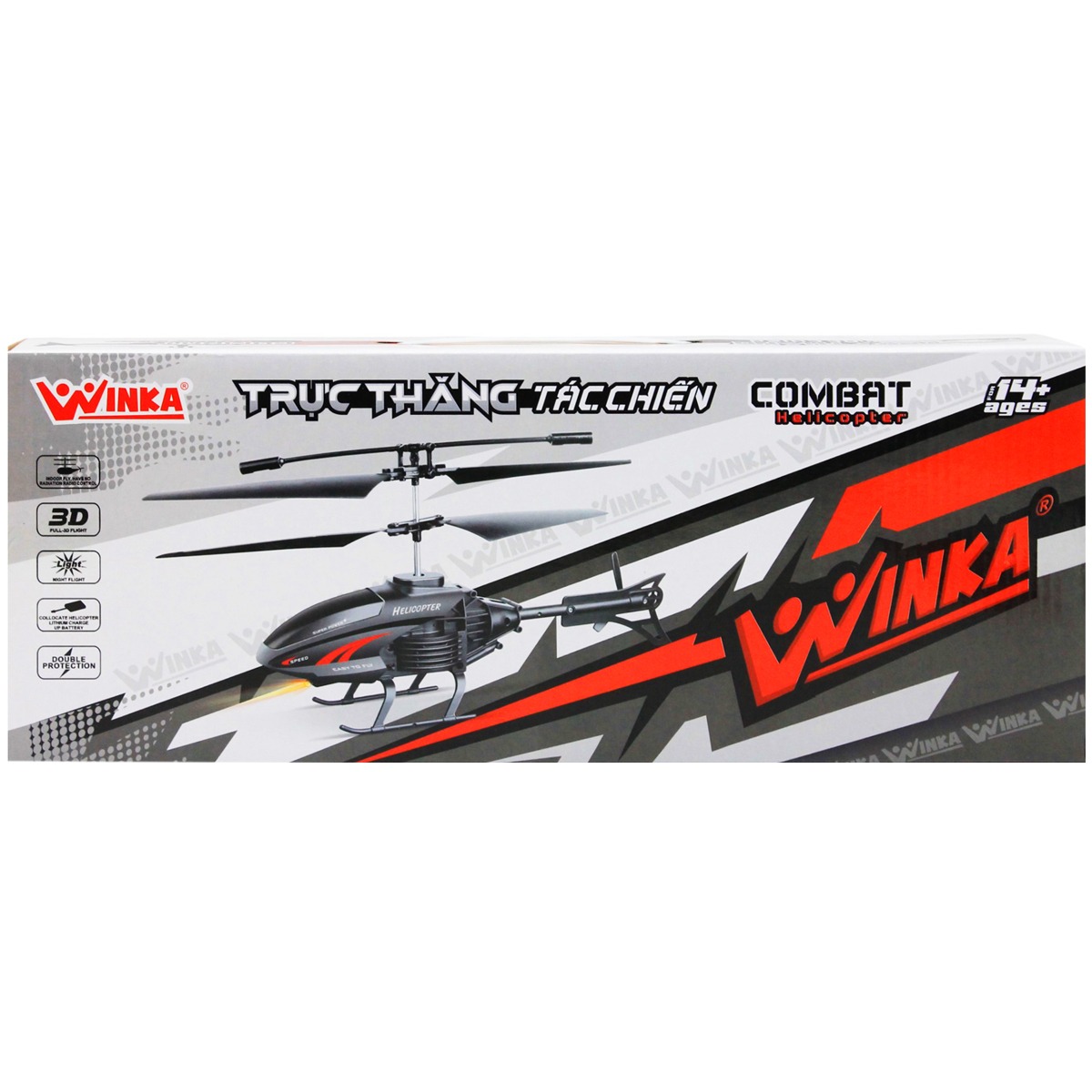THÔNG TIN SẢN PHẨM 1. Tên sản phẩm: Trực thăng tác chiến điều khiển từ xa Winka 2. Thương hiệu: Winka 3. Mã sản phẩm: DK81313 4. Thông số kỹ thuật: Có sử dụng pin. Pin sạc USB