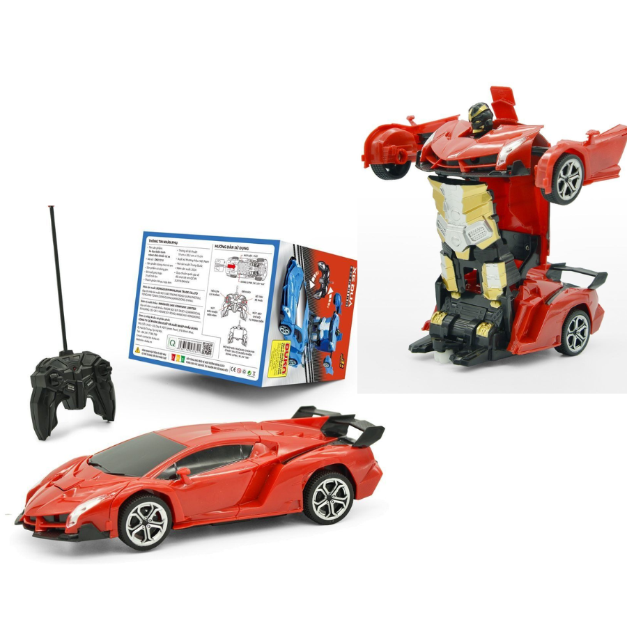 Đồ chơi xe điều khiển được thiết kế với mô hình xe đua, chất liệu hợp kim siêu bền, từ chiếc xe đua có thể biến hóa thành mô hình robot siêu chiến binh di
