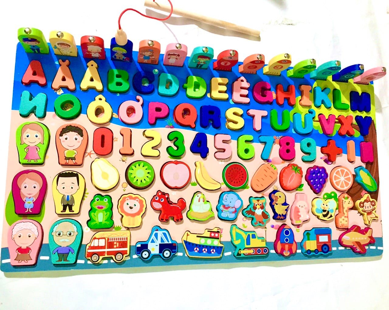Bảng Đồ Chơi Thông Minh Cho Bé 2-6 tuổi Học Chữ cái , Số Đếm , Câu Cá 7in1 Bằng Gỗ An Toàn
