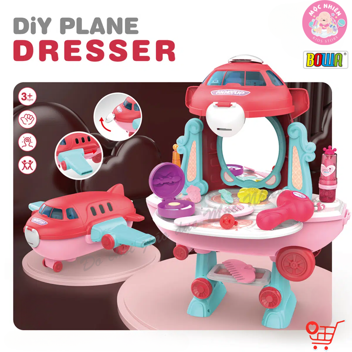 ✨Đồ Chơi Hướng Nghiệp Nhập Vai BOWA 8091 - Máy Bay Trang Điểm 2 trong 1 (28 Chi Tiết)