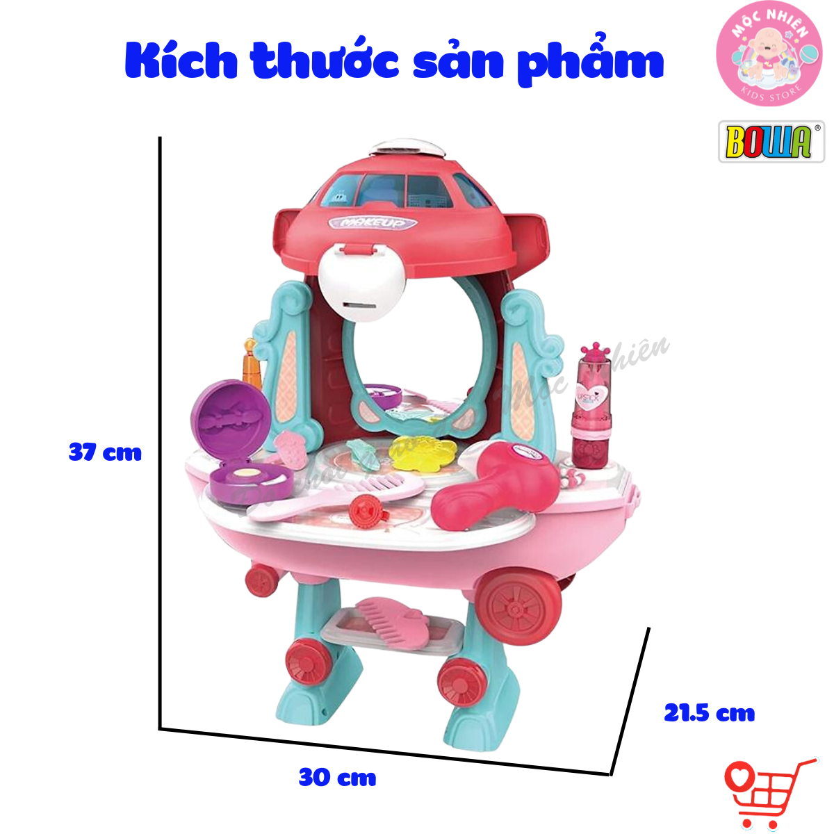 Bộ đồ chơi hướng nghiệp nhập vai Bowa 8078 - Xe buýt trang điểm 25 chi tiết (bánh xe đẩy được) THÔNG TIN SẢN PHẨM: - Bộ sản phẩm đồ chơi nhập vai BOWA