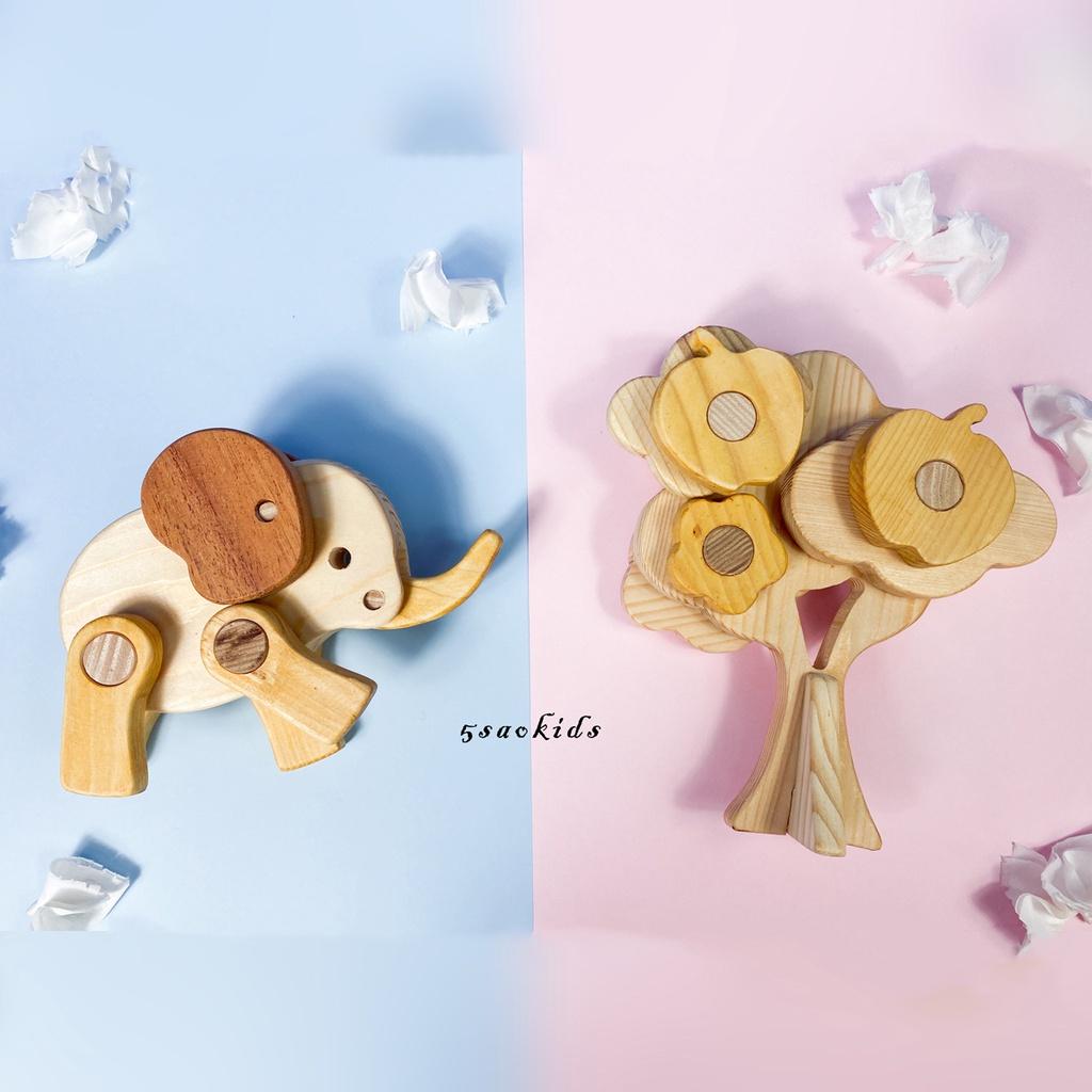 - Bộ sản phẩm gồm : 1 cây, 1 cá heo, 1 bạn chó, 1 bạn voi, 1 bạn thỏ