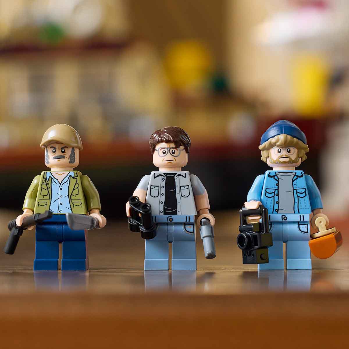 Bao gồm 3 nhân vật LEGO mini: Chief Brody, Matt Hooper và Sam Quint – mỗi người đi kèm phụ kiện quen thuộc từ phim