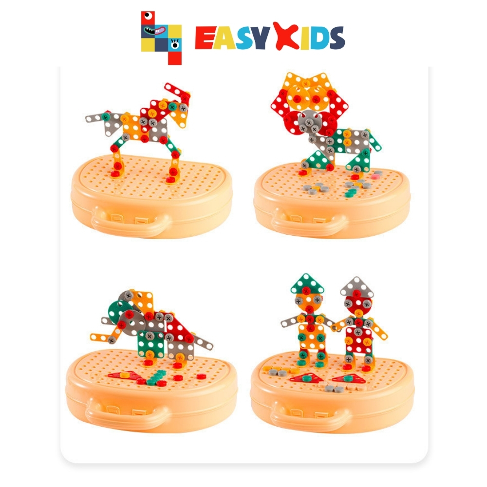 Bộ Đồ Chơi Kỹ Sư Lắp Ráp Kèm Khoan Điện, Đồ Chơi Vặn Ốc Vít Hakykid Giúp Bé Thỏa Sức Sáng Tạo