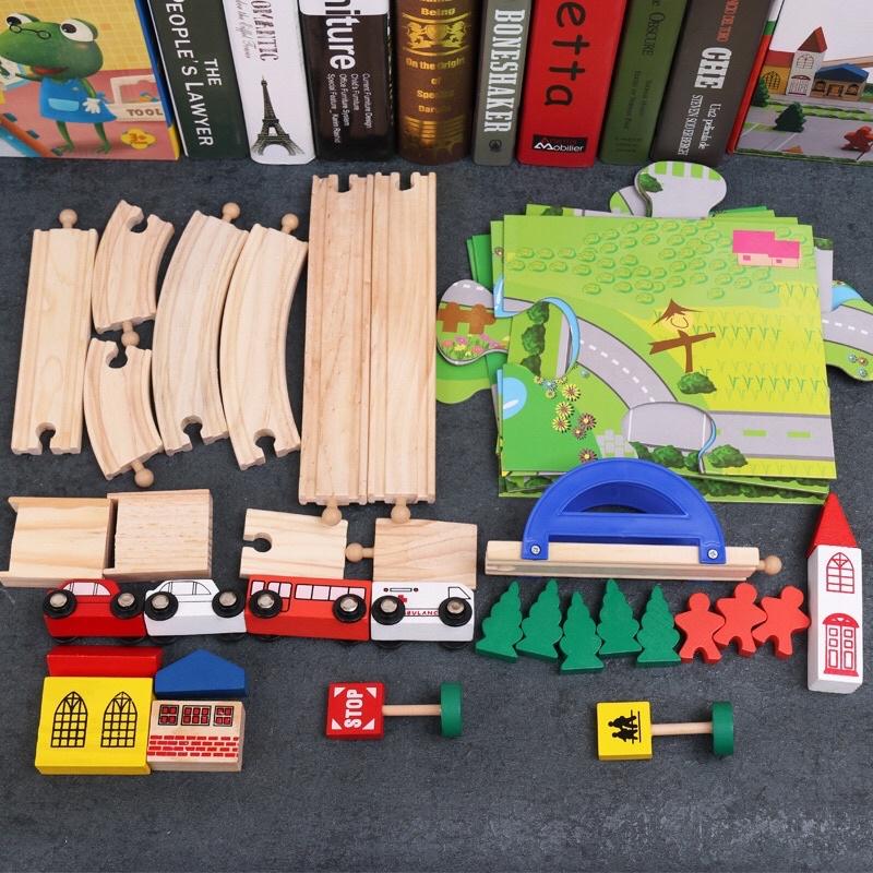Đồ chơi gỗ thông minh lắp ghép mô hình giao thông Rail Overpass