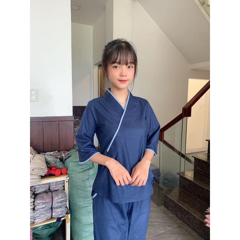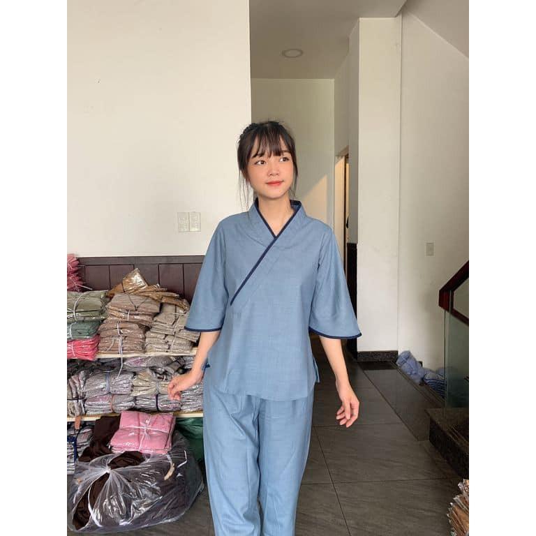 Quần áo phật tử đồ lam đi chùa mẫu tim bầu vải tơ