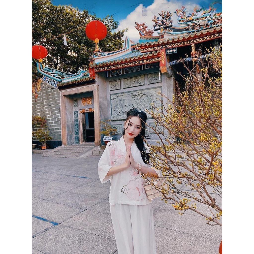 Đồ lam đi chùa - Quần áo đi chùa - Đồ lam phật tử - Bộ đồ đi lễ chùa thêu sen cổ tàu (Ảnh + Video shop tự quay)