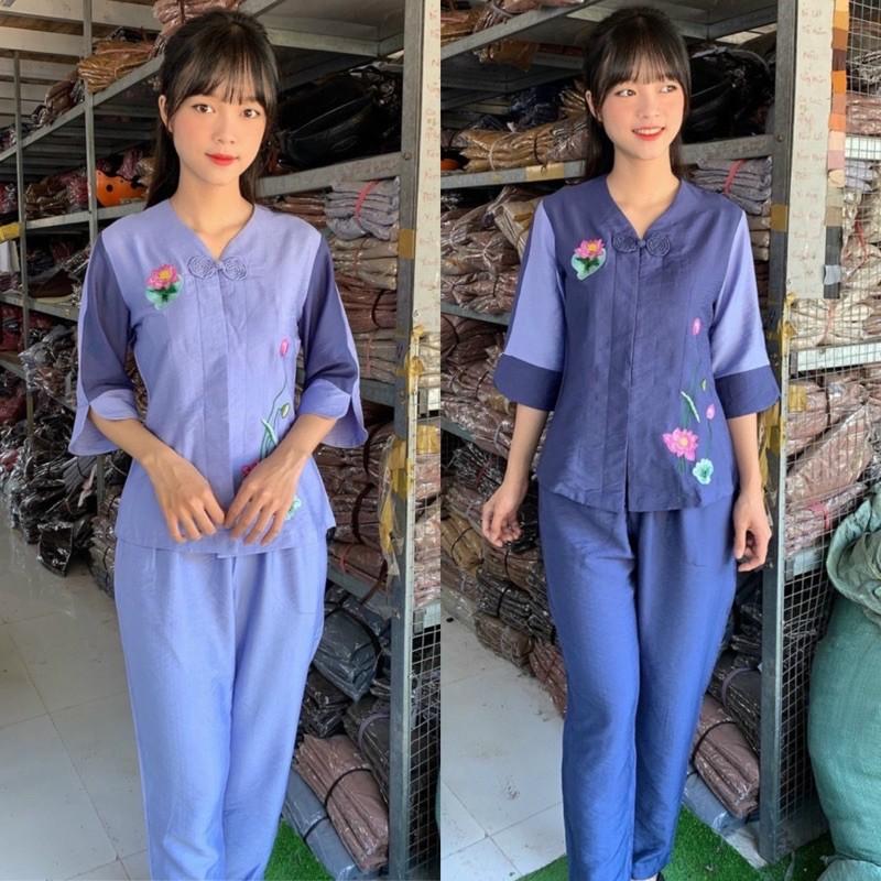 ✨Đồ Lam Đi Chùa # Tim 1Nút Bông Cao Cấp# Quần Áo # Đồ Bộ Nữ