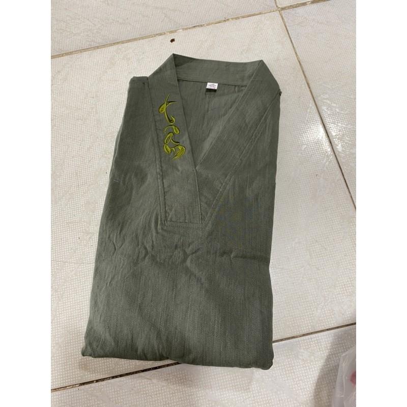 Đồ Bộ Lam Đi Chùa Chất Vải Lụa Xước Có Hình Thêu | Khánh An Shop