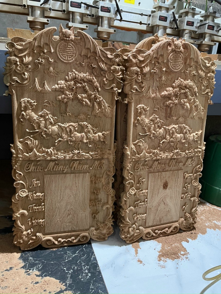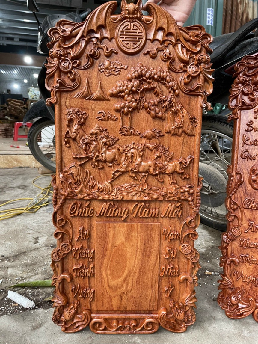 _ Tranh treo tường mã đáo thành công được làm bằng chất liệu gỗ gõ đỏ tự nhiên 100% ,Và được sơn pu làm bóng mờ để giữ lại mầu sắc vân gõ tự nhiên