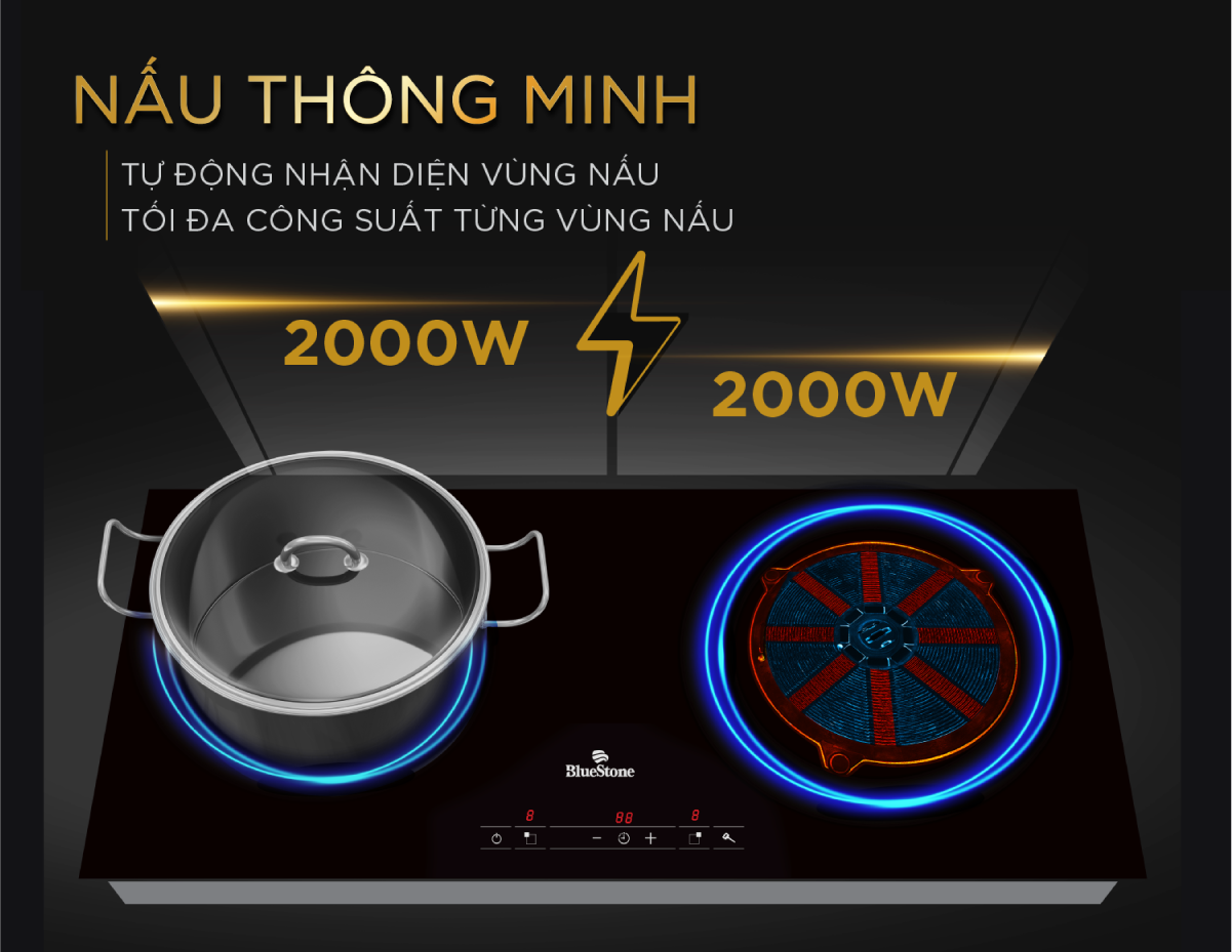 Bếp Từ Đôi BlueStone ICB-6819 có công suất vượt trội đến 4000W, điều này cho phép bạn nấu nướng nhanh chóng và hiệu quả.