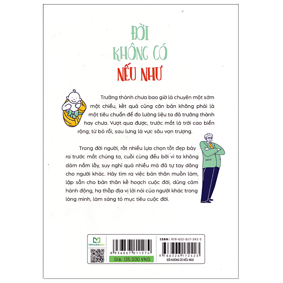 - "ĐỜI KHÔNG CÓ NẾU NHƯ" - Cuốn sách như một người dẫn lối thông thái dành cho tuổi trẻ Nếu bạn đang cảm thấy mất niềm tin, lạc lối, chông chênh hay cảm thấy động lực trong mình đang từ từ vơi đi, đừng vội nản chí! Hãy dành thời gian suy nghĩ trong quãng thời gian qua bạn đã kiên cường thế nào, mong muốn ra sao để đạt được mục tiêu của mình. Tuổi trẻ mà, bạn không cô đơn, ai cũng có những lúc cô đơn và bất lực nhất, nhưng nhờ những "cú ngã" bạn mới có cơ hội để trưởng thành và học được những kinh nghiệm đặt giá chỉ nhờ trải nghiệm mà có. Cuộc sống sẽ ngày càng tốt đẹp hơn nếu bạn biết mỉm cười, chấp nhận thất bại và can đảm đứng dậy để đi tiếp. "Cho dù số phận bất công đến mấy, vẫn mong bạn có thể dũng cảm đối mặt." Cuốn sách "Đời không có nếu như" giống như một lời an ủi, một cái vỗ về cho những ngày mỏi mệt; nhưng cuốn sách cũng là đòn bẩy, một lời cổ vũ nhiệt thành dành cho bạn. "Đời không có nếu như" bao gồm 6 phần, mỗi phần sẽ mang một chủ đề khác nhau mà qua đó tác giả Họ Hậu Nghệ Ngữ sẽ đưa ra cho bạn những lời khuyên cùng bài học thông thái để bạn có thể nhìn đời một cách rõ ràng, cũng như thắp lại ngọn lửa của động lực và niềm đam mê trong trái tim mình, từ đó vững vàng hơn để theo đuổi ước mơ và mục tiêu phía trước! Cuốn sách hứa hẹn sẽ trở thành một điểm tựa tinh thần chắc chắn và một người dẫn lối đáng tin tưởng bạn cần trong những năm tháng tuổi trẻ. "Đừng hoảng sợ bất an, tương lai cuối cùng sẽ đến."