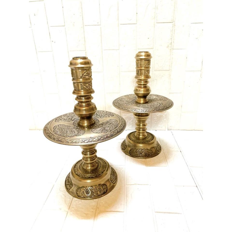 Cặp chân nến hoa văn đồng nguyên chất vàng đậm
