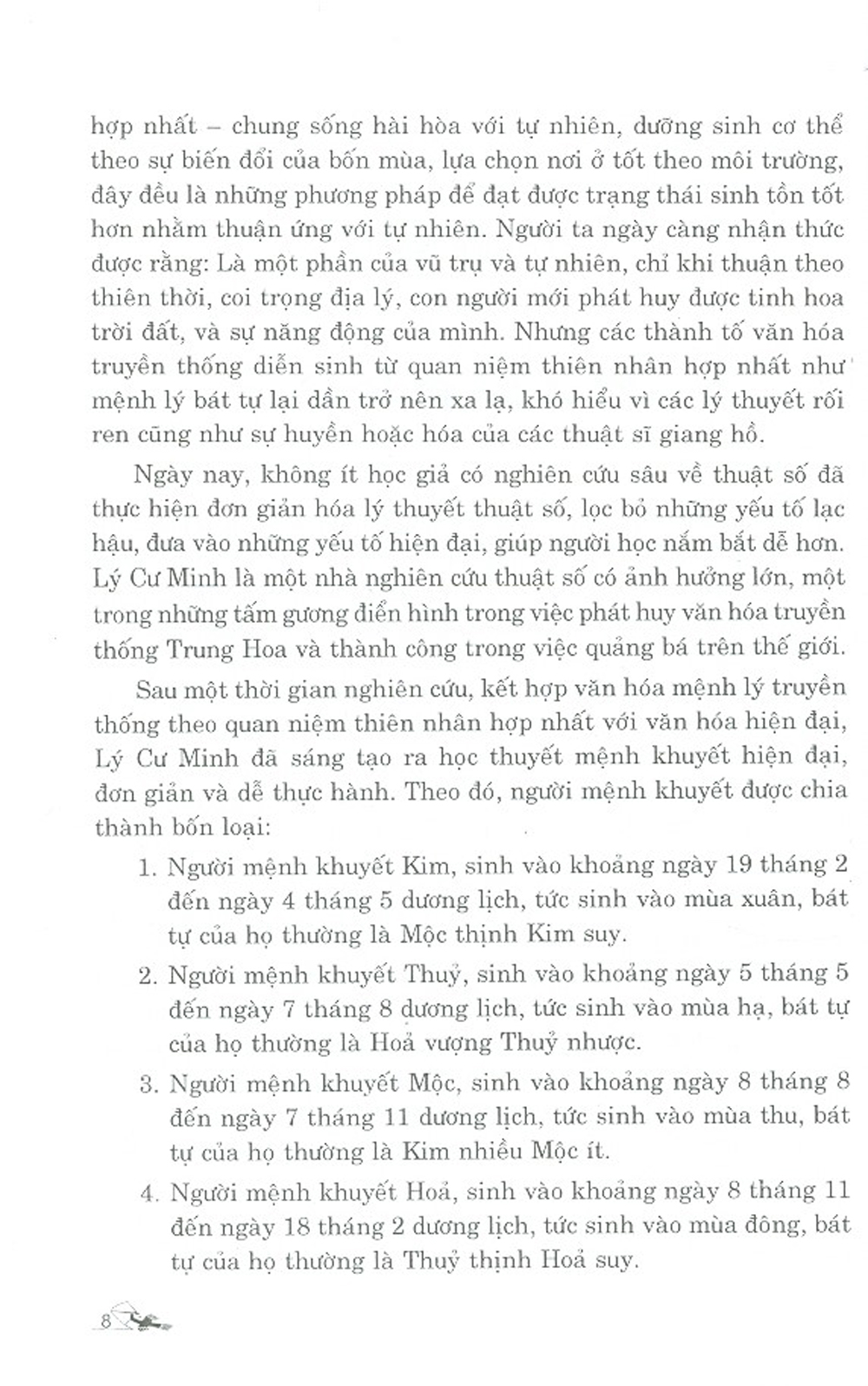 1/Đổi Vận Cho Người Mệnh Khuyết - Quyển Thu Đông I. GIỚI THIỆU SÁCH Sách Đổi Vận Cho Người Mệnh Khuyết Quyển thu đông Lý Cư Minh nói về lý thuyết thuật số, mệnh mỗi