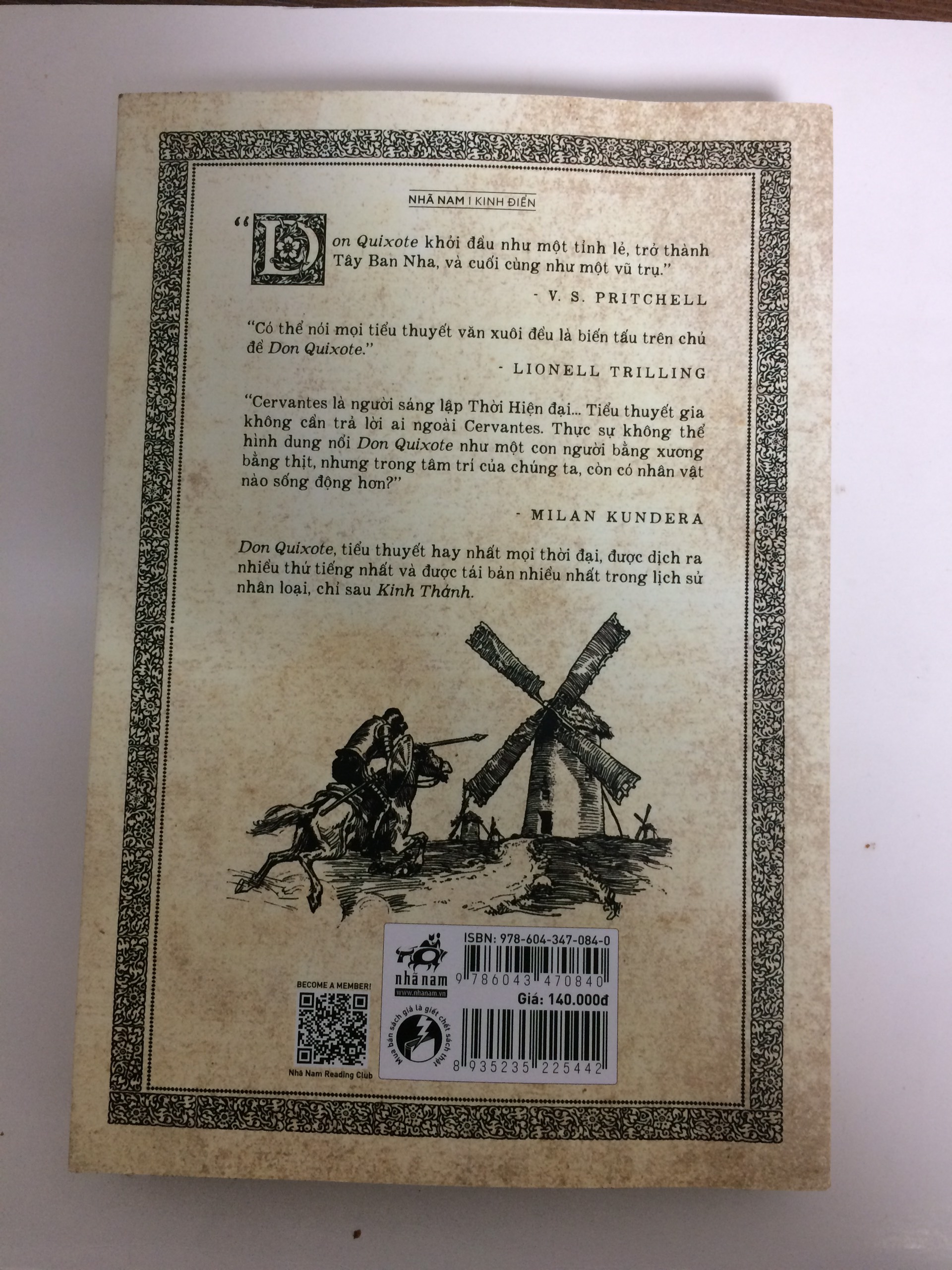 - Lionell Trilling “Cervantes là người sáng lập Thời Hiện đạ Tiểu thuyết gia không cần trả lời ai ngoài Cervantes. Thực sự không thể hình dung nổi Don Quixote như một con người bằng xương bằng thịt, nhưng trong tâm trí của chúng ta, còn có nhân vật nào sống động hơn?”
