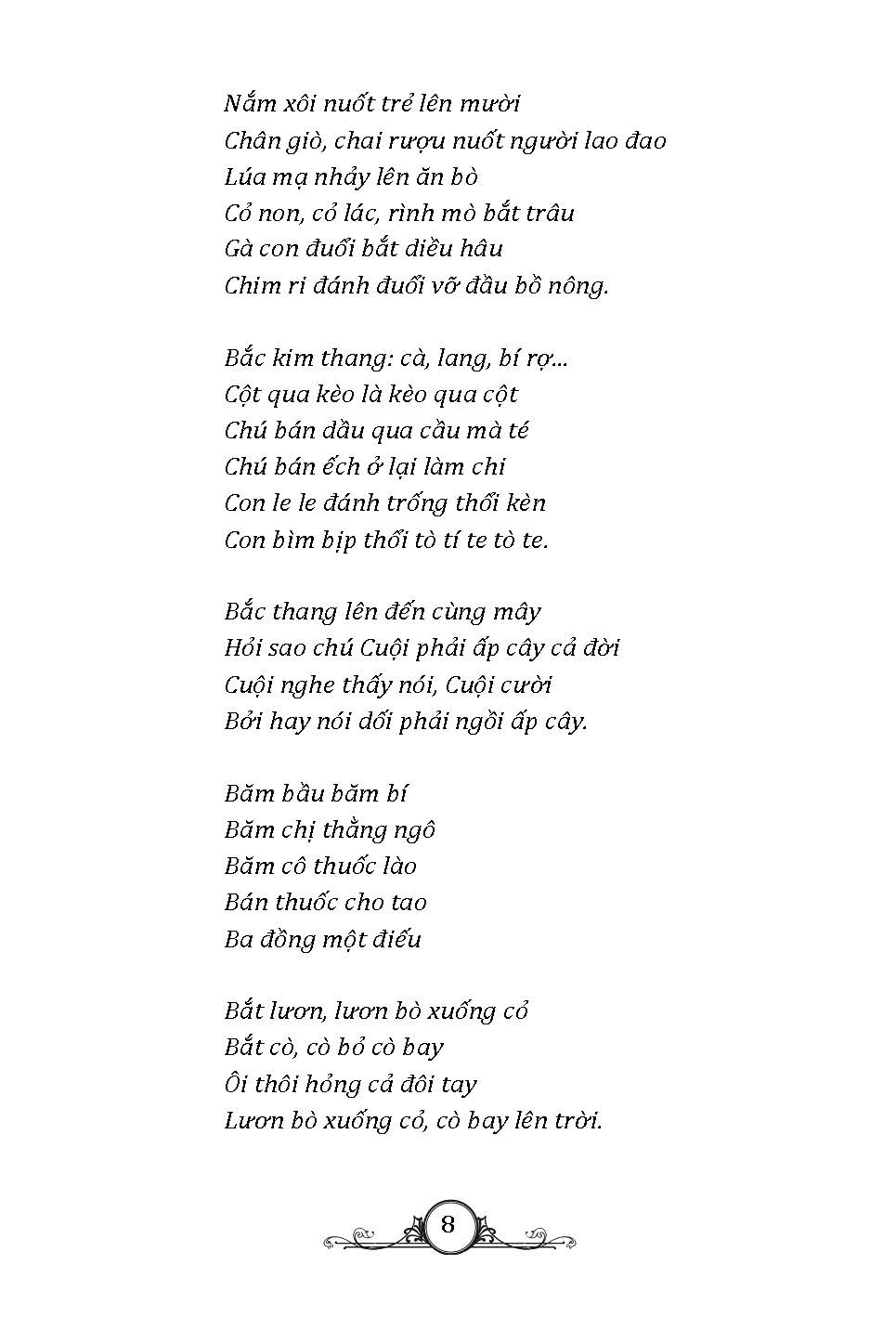 Tuyển tập thơ ca dân gian với những câu hát, câu thơ có vần điệu vui tai được truyền miệng từ đời này qua đời khác, giúp con trẻ phát triển trí tuệ, kích thích