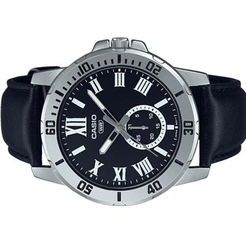 Đồng hồ Casio MTP-VD200L-1BUDF thuộc Casio nam với dây da, nhiều kim, chống nước, mặt số la mã.