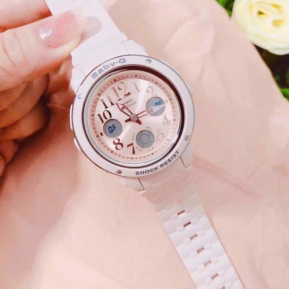 Từ dòng BGA-150 mặt to phổ biến đã xuất hiện các mẫu mới với số Ả Rập tuyệt vời cho bốn vạch giờ. Mẫu màu hồng nhạt và trắng kết hợp vạch giờ số Ả Rập màu vàng hồng mang đến họa tiết màu sắc nữ tính và thanh lịch. Ba mặt số cung cấp thông tin về ngày tháng, Giờ thế giới, đồng hồ bấm giờ và nhiều hơn nữa.