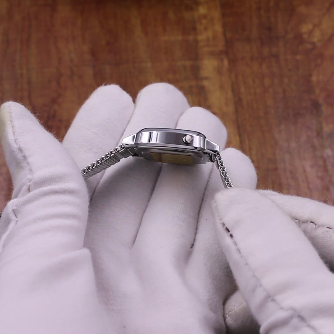 Thời trang cho phái đẹp với mẫu dây lưới Casio LA670WEM-7DF được phối tông màu bạc trẻ trung cùng với thiết kế bộ máy nhỏ gọn thanh mảnh với nền mặt số điện tử hiện