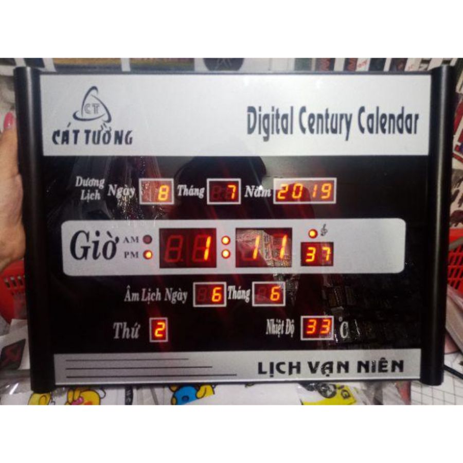 Đồng hồ treo tường Thông Tin Sản Phẩm Lịch Vạn Niên Cát Tường 3A sở hữu led điện tử sử dụng điện cùng kích thước nhỏ gọn đơn giản nhưng vẫn hiển thị đầy đủ