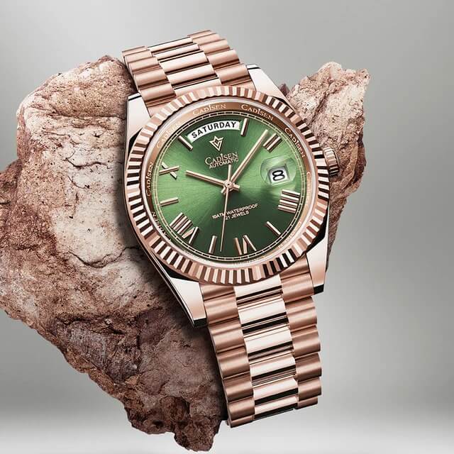 Đồng hồ cơ Homage dáng Day Date đến từ nhà Cadisen C8185G, size 40mm, kính Sapphire, máy Miyota 8285