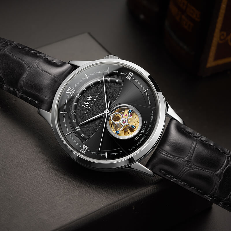 IW CARNIVAL IW525G-6 được hãng thiết kế mang phong cách cổ điển, mặt đen làm chủ đạo, được nhiều người yêu thích. Thiết kế lộ cơ đăng cấp của IW CARNIVAL IW525G-6 khoe ra bộ máy bên trong, khẳng định khả năng chế tác đồng hồ của một trong những thương hiệu hàng đầu của Thụy Sỹ.
