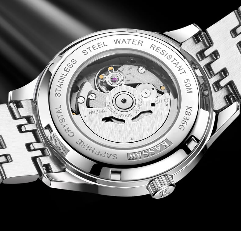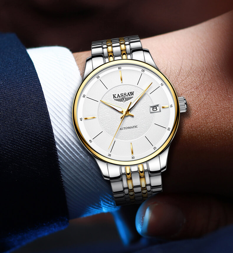 Mua tại TiktokĐồng hồ nam chính hãng Kassaw Thụy Sỹ Thiết kế sang trọng, đẳng cấp cho quý ông Thời gian trữ cót lâu lên đến 40h Chống nước 5ATM, Kính sapphire Toàn bộ máy được làm từ thép không gỉ 316L Đồng hồ cơ Automatic, Sử dụng bộ máy Seiko Nh35A Chính hãng