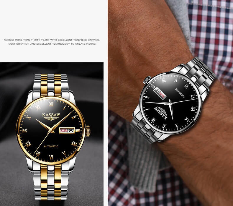 Mua tại TiktokĐồng hồ nam chính hãng Kassaw Thụy Sỹ Thiết kế sang trọng, đẳng cấp cho quý ông Thời gian trữ cót lâu lên đến 40h Chống nước 5ATM, Kính sapphire Toàn bộ máy được làm từ thép không gỉ 316L Đồng hồ cơ Automatic, Sử dụng bộ máy Seiko Nh35A hoặc Miyota 8215 Chính hãng
