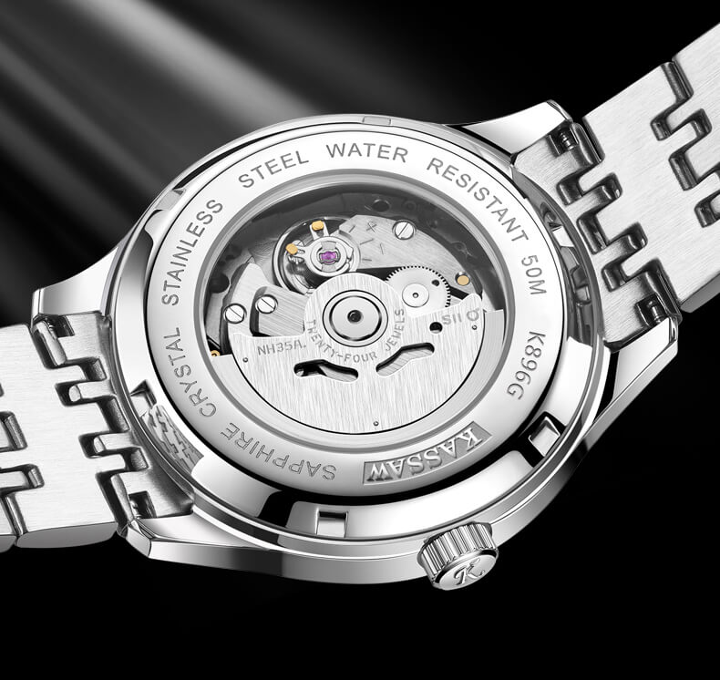 Mua tại TiktokĐồng hồ nam chính hãng Kassaw Thụy Sỹ Thiết kế sang trọng, đẳng cấp cho quý ông Thời gian trữ cót lâu lên đến hơn 40h Chống nước 5ATM, Kính sapphire Toàn bộ máy được làm từ thép không gỉ 316L Đồng hồ cơ Automatic, Sử dụng bộ máy Seiko NH35A Chính hãng