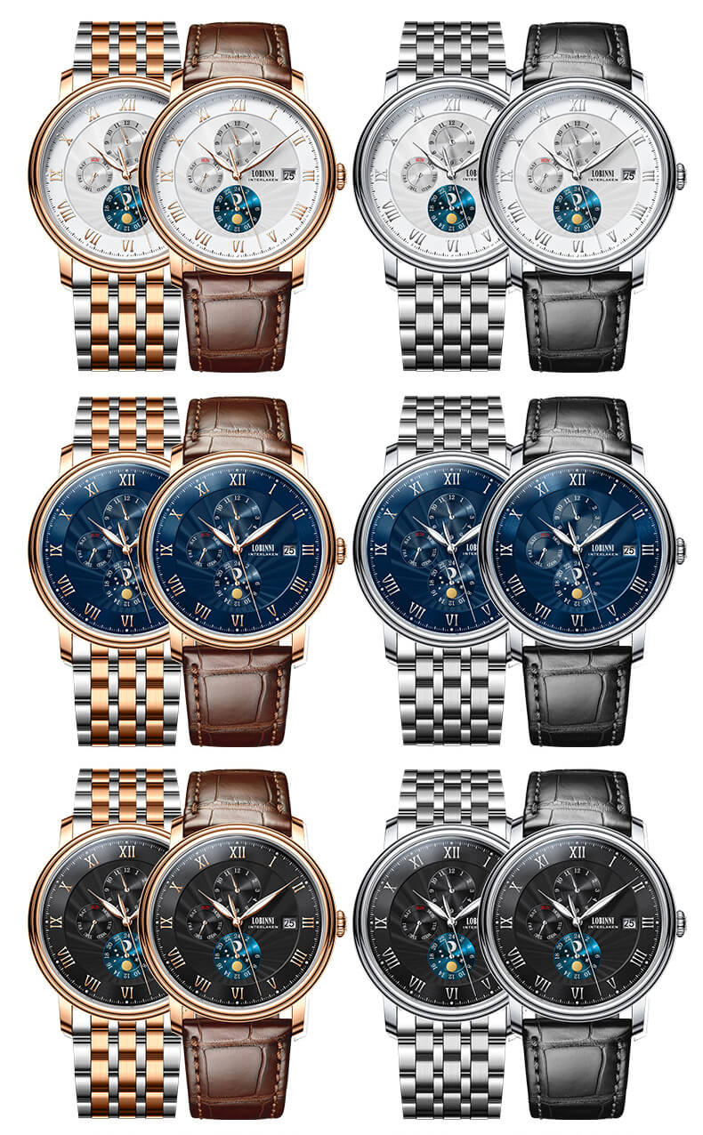 Đồng hồ nam chính hãng LOBINNI Thụy Sỹ Thiết kế sang trọng, đẳng cấp cho quý ông Thời gian trữ cót lâu lên đến 40h Chống nước 5ATM, Kính sapphire Toàn bộ máy được làm