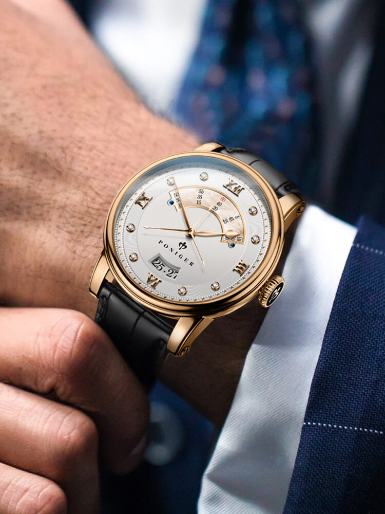 ♪ Sự pha trộn tinh tế đầy bất ngờ và xen lẫn giữa phong cách hiện đại, cổ điển là yếu tố làm nên sự hiện diện của phiên bản đồng hồ PONIGER P719-1 tại Việt Nam, dành riêng cho nam giới.