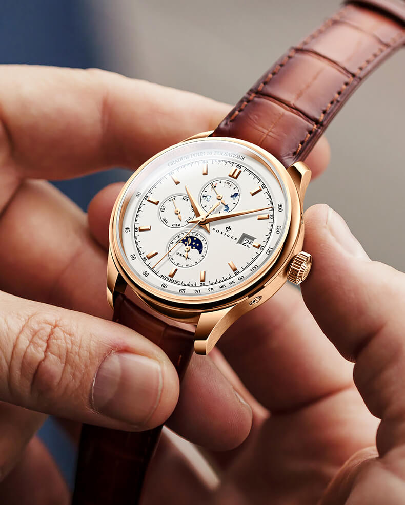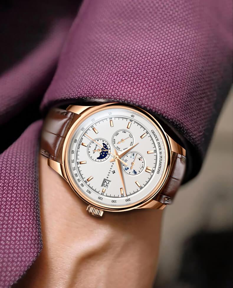 ♪ Sự pha trộn tinh tế đầy bất ngờ và xen lẫn giữa phong cách hiện đại, cổ điển là yếu tố làm nên sự hiện diện của phiên bản đồng hồ PONIGER P815-2 tại Việt Nam, dành riêng cho nam giới.