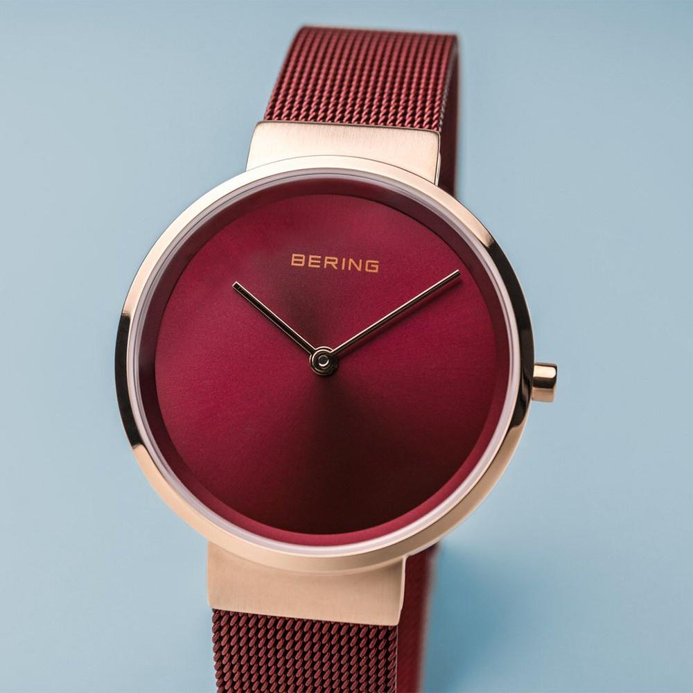 Cổ điển, phá cách và thú vị. Phong cách hoàn hảo kết hợp với chủ nghĩa tối giản đương đại. Lấy cảm hứng từ thiết kế Đan Mạch, CLASSIC COLLECTION đại diện cho một chiếc đồng hồ độc đáo, làm nổi bật hoàn hảo phong cách hàng ngày của bạn. Vỏ máy bằng thép không gỉ màu vàng hồng được chải mịn, được làm bằng thép không gỉ y tế (316L) nguyên chất, chất lượng cao, kết hợp với dây đeo Milanese hiện đại màu đỏ, mang đến vẻ ngoài BERING cổ điển.