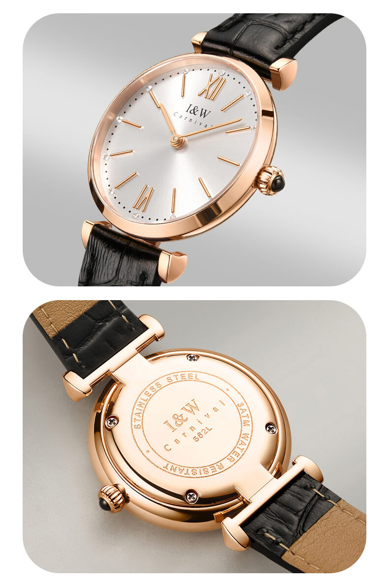Thương hiệu I&W Carnival Quốc gia đăng ký thương hiệu Thụy Sỹ Mã sản phẩm 573L1 Giới tính Nữ Bảo hành Chính hãng 24 tháng Kiểu máy Japan Miyota Automatic Mov't (Máy cơ tự động