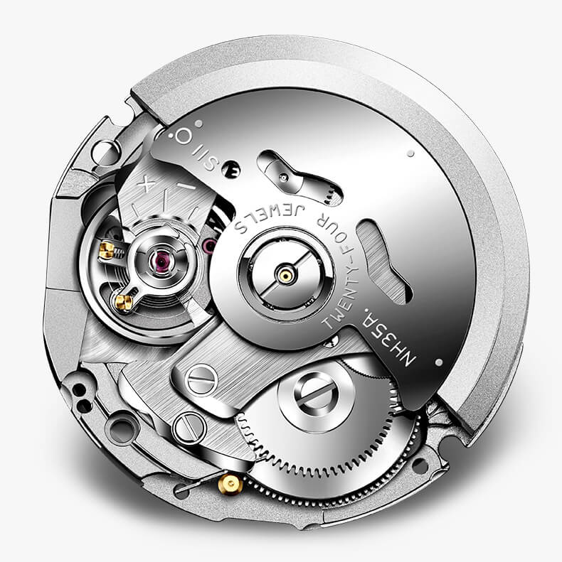 Đặc điểm kỹ thuật Dây đeo bằng da Mặt kính khoáng Chống nước Giờ hiện hành thông thường Đồng hồ kim: 3 kim (giờ, phút, giây), 3 mặt số (24 giờ, ngày, thứ) Độ chính