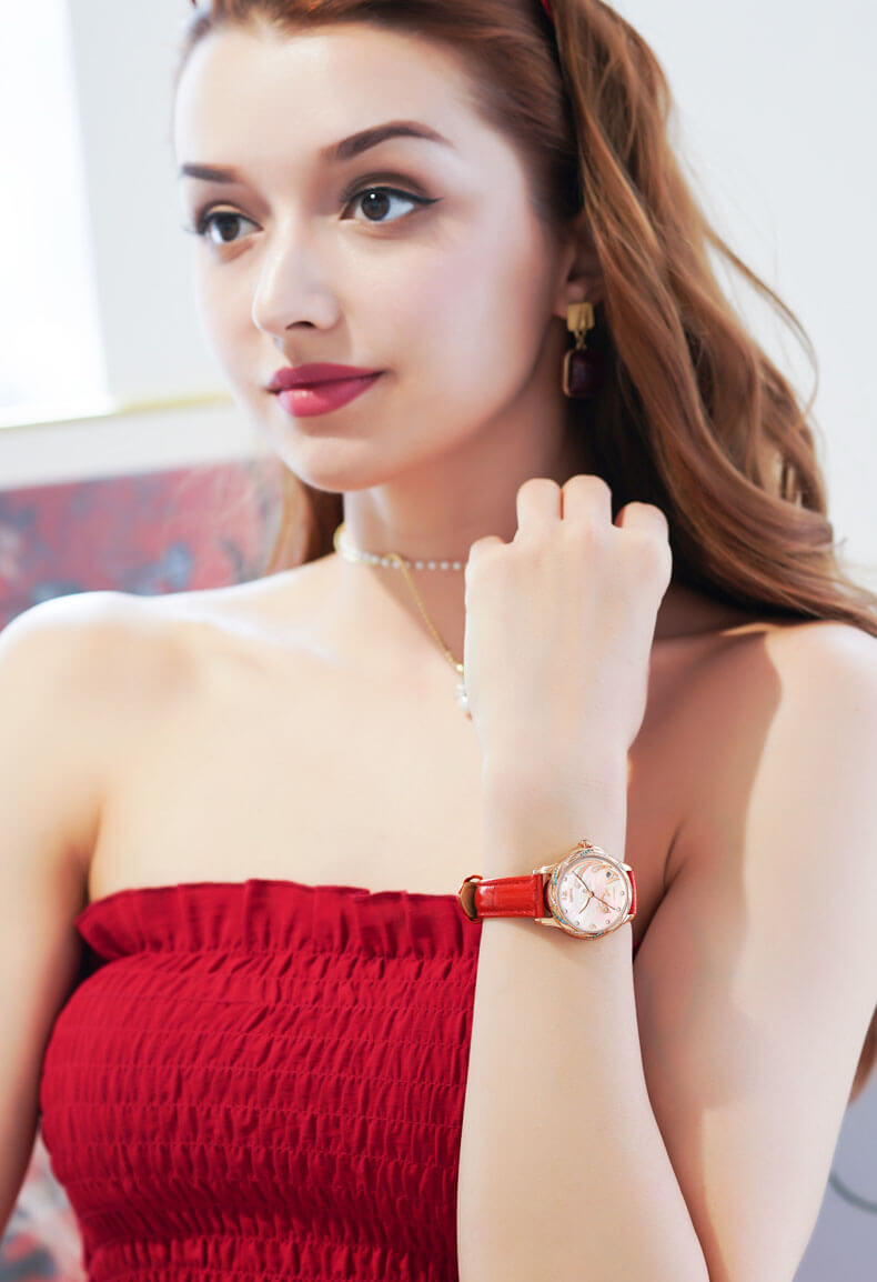 Chiếc đồng hồ thích hợp với các bạn nữ yêu thích sự trẻ trung, quyến rũ và với thiết kế nhỏ nhắn nhẹ nhàng cho nữ giới dây da tối màu giúp bạn dễ phối