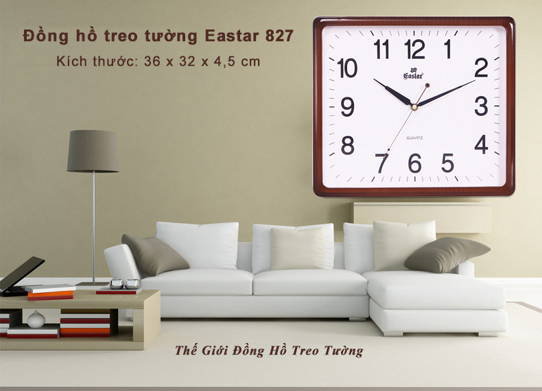 • Đồng Hồ Treo Tường CAO CẤP EASTAR KIM TRÔI NHẬT Mặt Chữ Nhật bo tròn góc, kích thước 36 x 32 cm, dày 4,5 cm.