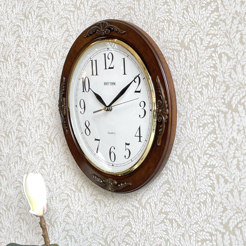 Mua tại TiktokĐồng hồ treo tường Nhật Bản Rhythm, sử dụng 1 pin (AA), vỏ gỗ màu nâu cẩn hoa văn sang trọng. Kích thước 30.0 x 4.0cm, trọng lượng 795g Máy cực êm không phát tiếng kêu gây khó chịu. chính xác, bền bỉ. Kính mo với viền xi mạ vàng sáng bóng, thích hợp cho gia đình , sảnh khác sạn.