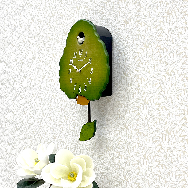 Mua tại TiktokĐồng hồ treo tường Nhật Bản Rhythm Cuckoo 4MJ413RH05, dùng 2 pin ( Cx2), vỏ gỗ chống mối mọt sơn màu xanh lá, Kích thước 29.4 x 43.6 x 9.7cm, trọng lượng 1kg. Sử dụng công nghệ hộp hơi độc quyền của Rhythm để thổi hơi tạo tiếng chim cuckoo. Mỗi đầu giờ cửa sổ mở, chú chim nhỏ nhảy ra hót cuckoo điểm giờ thật sinh động.