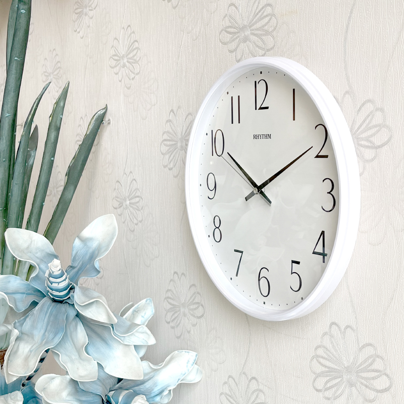 Đồng hồ treo tường Nhật Bản Rhythm CMG817NR03, dùng pin (AA x 1), vỏ nhựa cao cấp màu trắng. Kích thước 32.0 x 4.8cm, trọng lượng 760g. Bộ máy kim trôi chạy cực êm, chính xác, bền bỉ