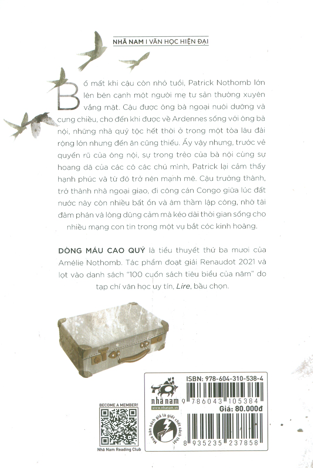 Dòng máu cao quý là tiểu thuyết thứ ba mươi của Amélie Nothomb. Tác phẩm đạt Giải Renaudot 2021 và lọt vào danh sách “100 cuốn sách tiêu biểu của năm” do tạp chí văn học uy tín, Lire, bầu chọn.