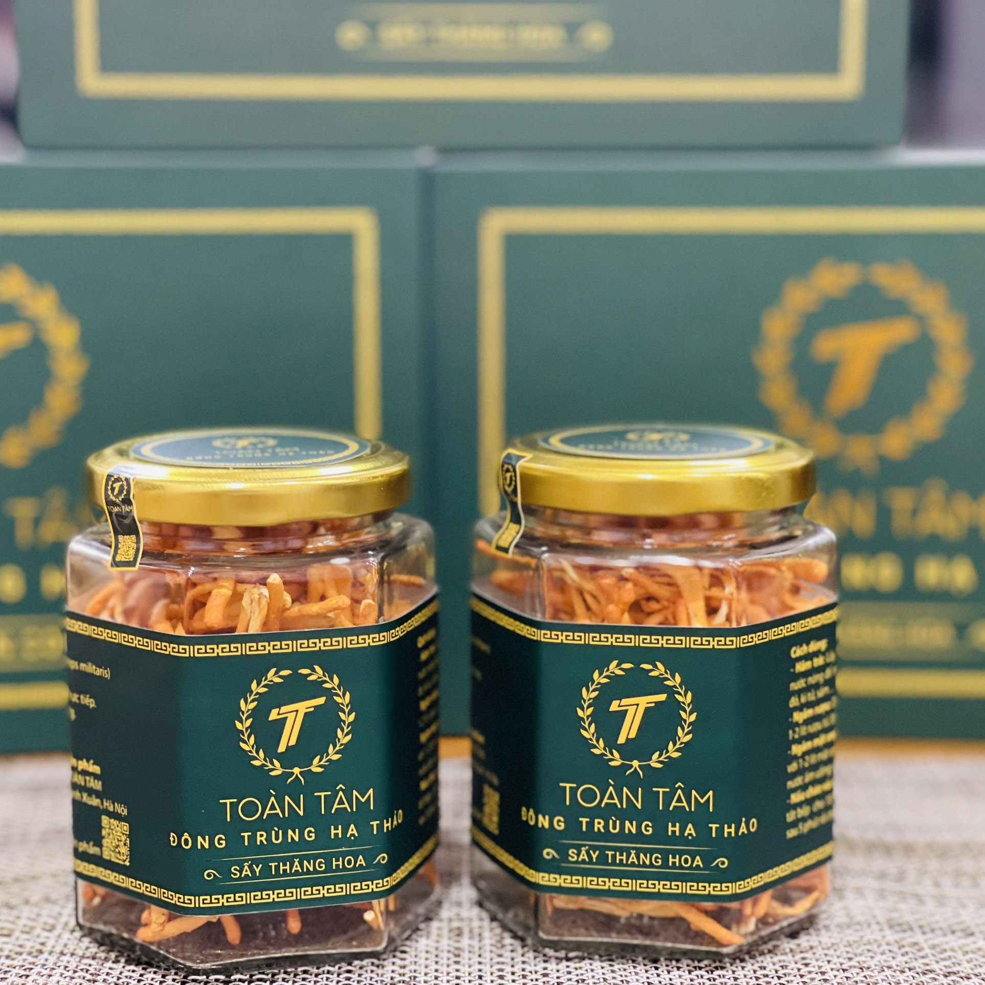 - Đông trùng hạ thảo rất tốt với hệ tim mạch, Đặc biệt hơn, ngày 18/8/2022, sản phẩm Đông trùng hạ thảo của công ty Toàn Tâm vinh dự được giới thiệu trên gian hàng quảng bá tại Hội nghị Xúc tiến thương thương mại tiêu thụ sản phẩm cho các hợp tác xã, công ty chuyên đề “Nông sản an toàn, rõ nguồn gốc xuất xứ”. Với sứ mệnh là không ngừng nghiên cứu, sáng tạo, phát triển ra những sản phẩm có chất lượng tốt vì sức khỏe con người, mang lại sức khỏe, an vui và hài lòng cho khách hàng. Hiện nay, Toàn Tâm đang có nhiều dạng sản phẩm khác nhau từ Đông Trùng hạ thảo phù hợp với từng đối tượng người sử dụng như là: