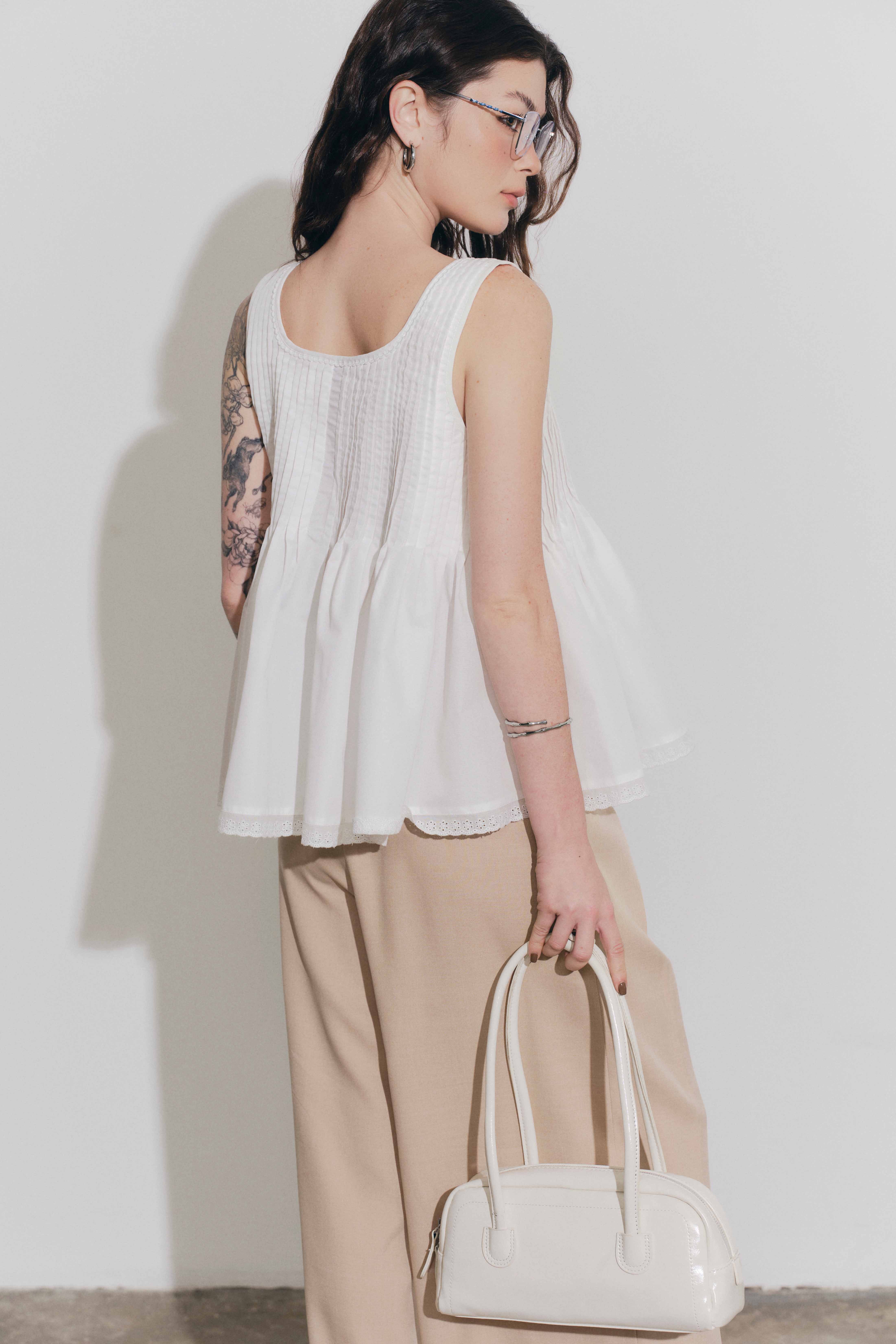. --------------- CHI TIẾT SẢN PHẨM ✿ Sản phẩm : Áo 2 dây nữ babydoll chiết eo xòe Min Miều Est.2013 ✿ Chất liệu : Kate Hoa ✿ Màu sắc : TRẮNG ✿ Size :