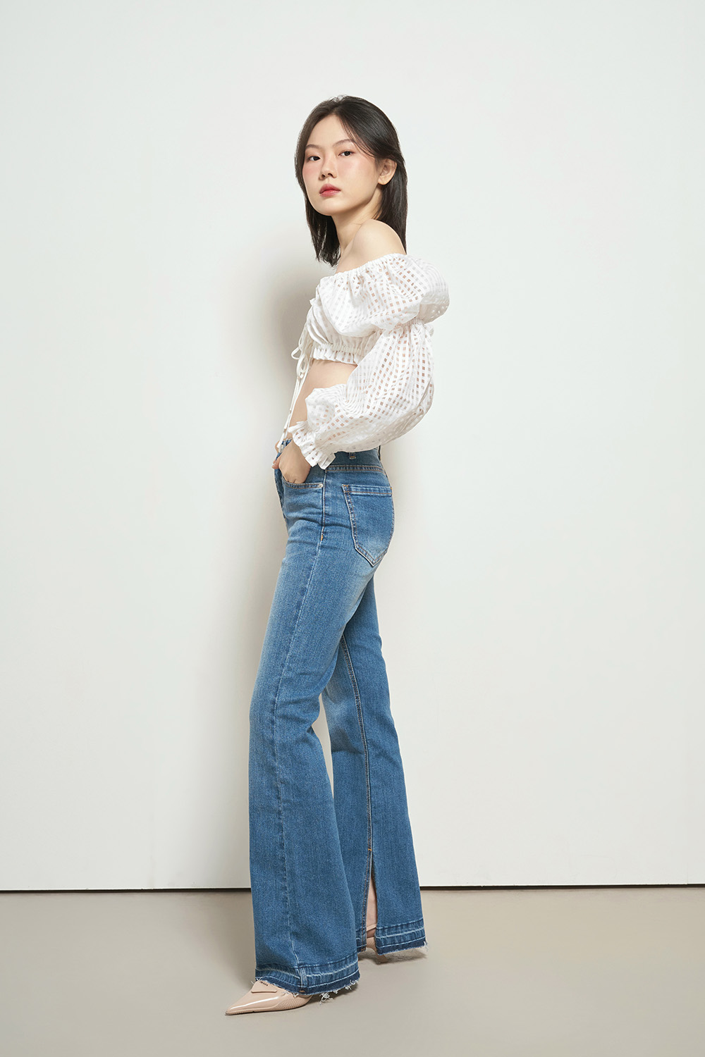 Áo croptop voan hoa với phần tay chuông trẻ trung, nữ tính. Áo có thể phối với nhiều loại trang phục theo nhiều phong cách từ quần, chân váy công sở đến quần sóc, chân