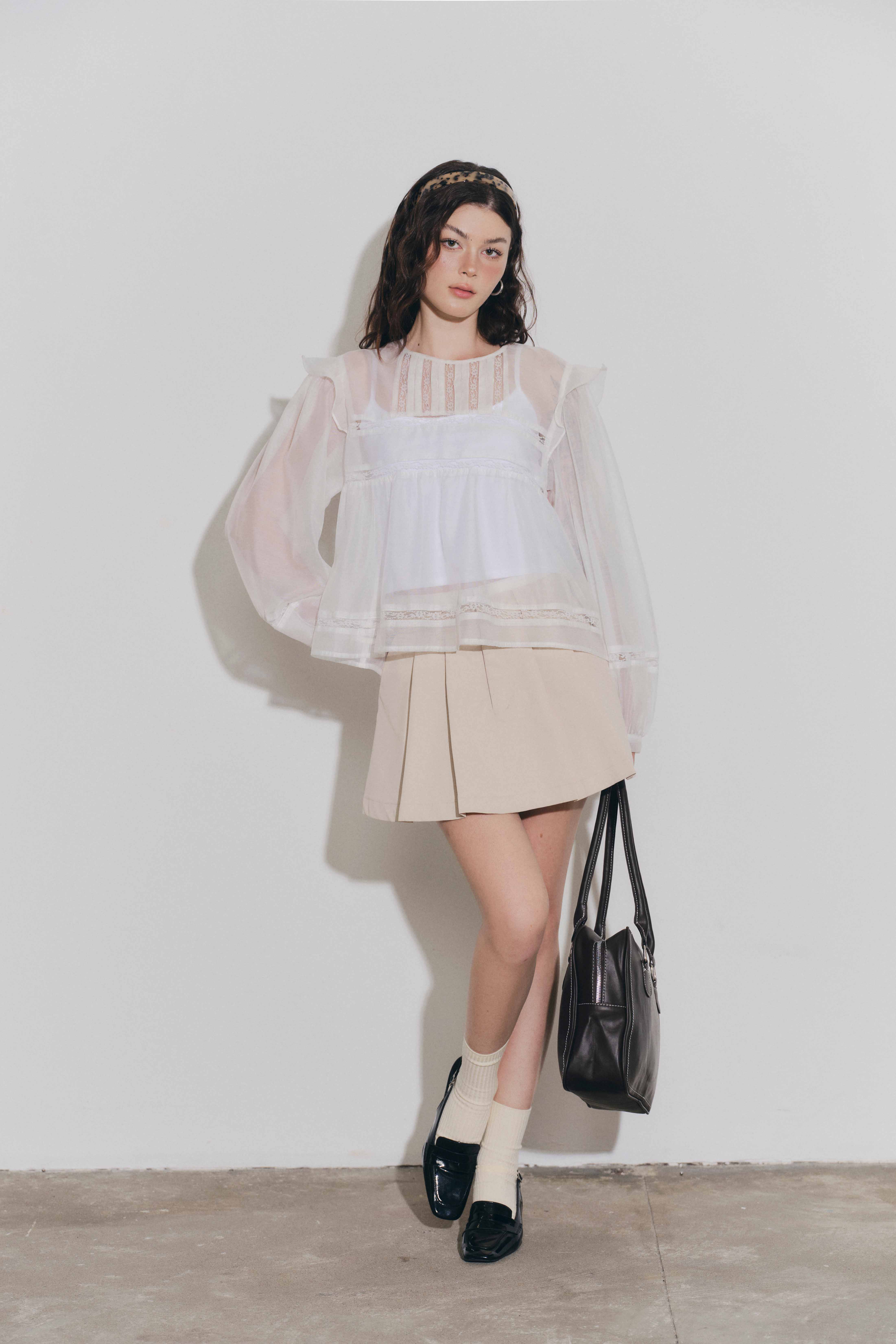 ✨DOTTIE - Áo phối đăng ten và ly - Trắng - T1132