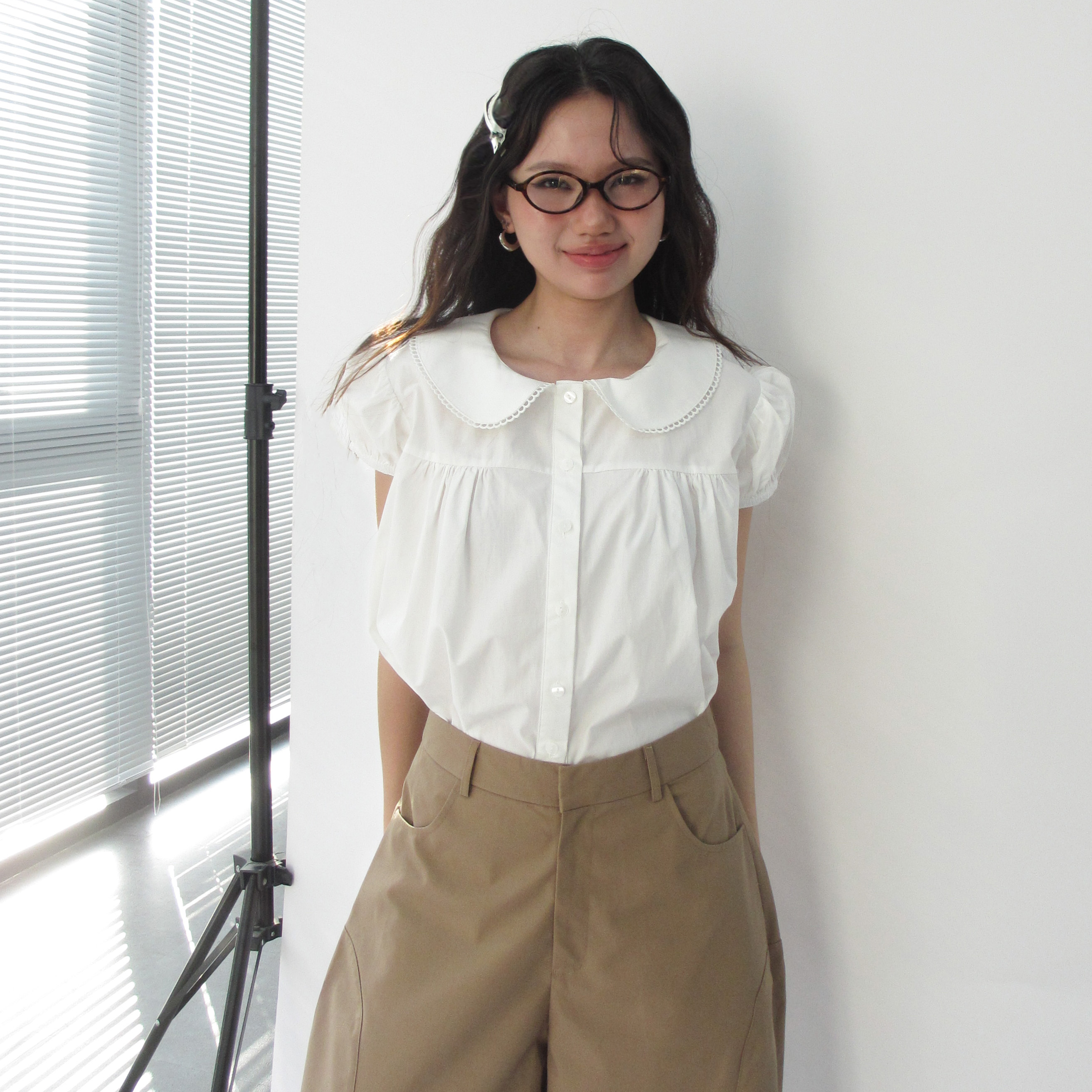 ✨DOTTIE - Áo tay phồng cổ lá sen - Trắng - T1117