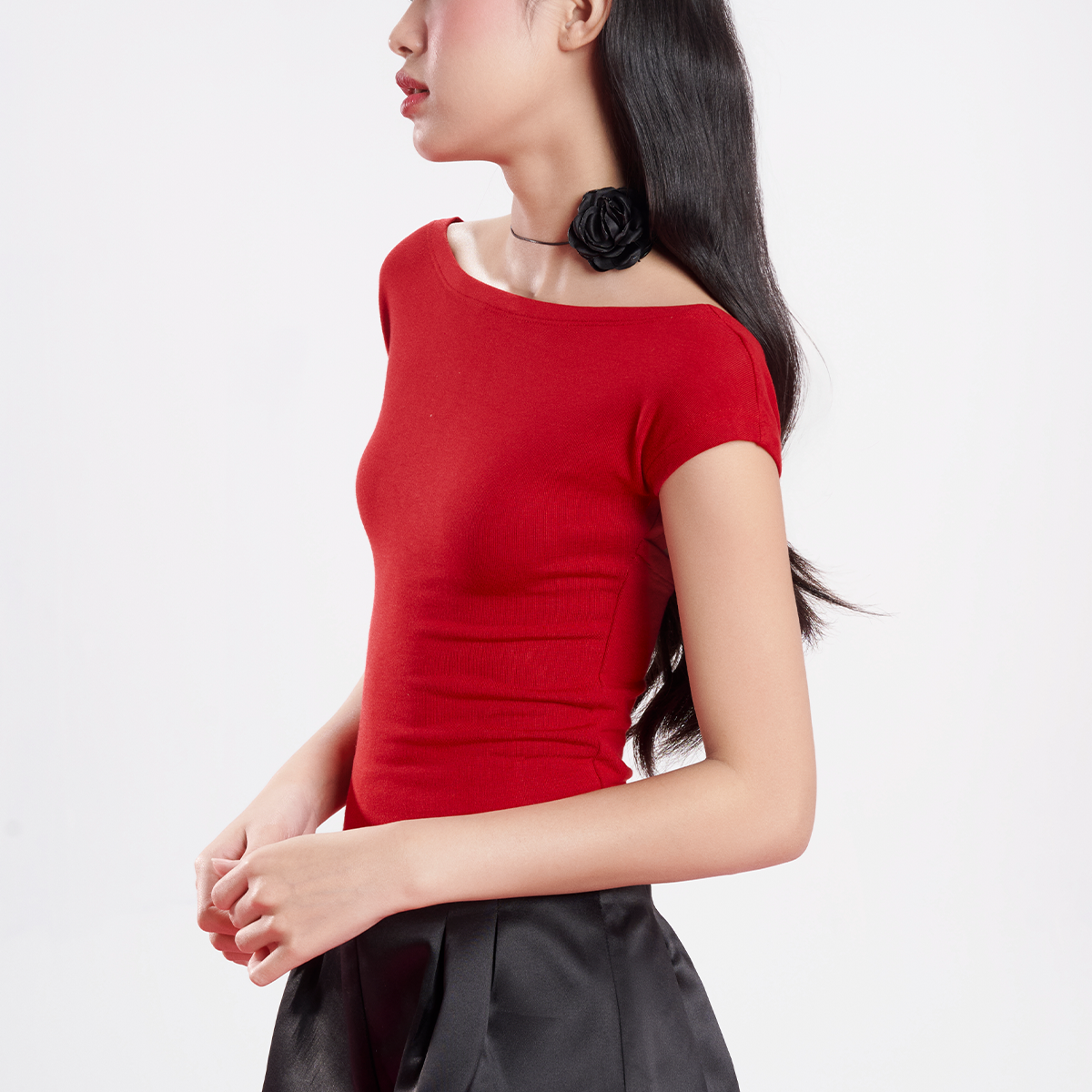 ✨DOTTIE - Áo thun ngắn tay hở lưng - Đỏ - T0864