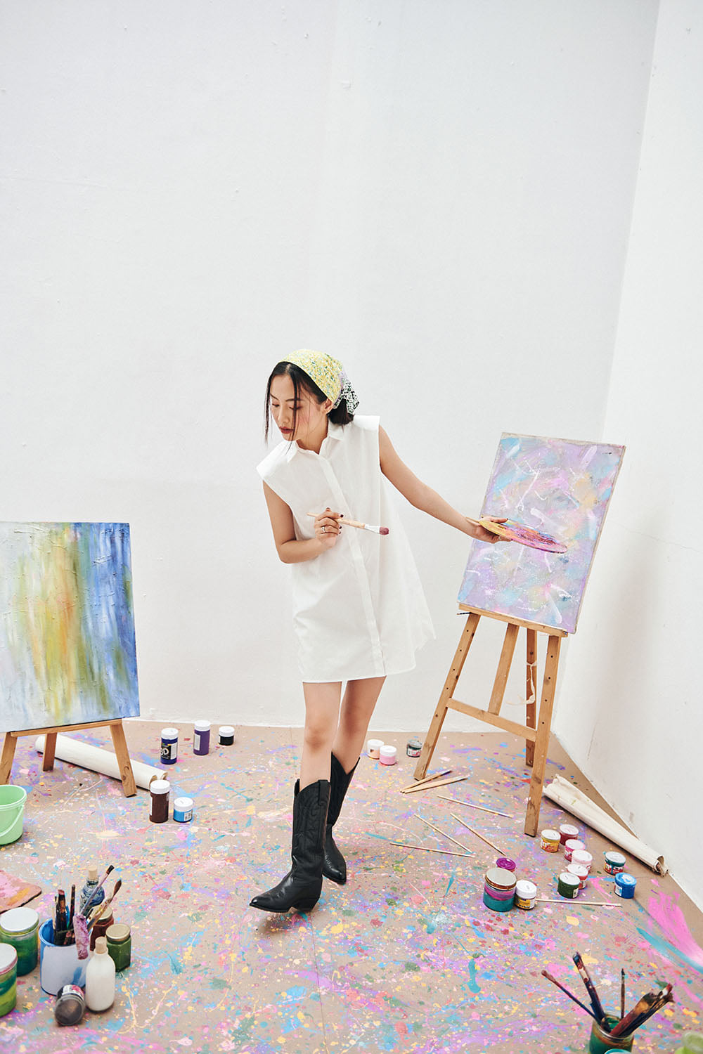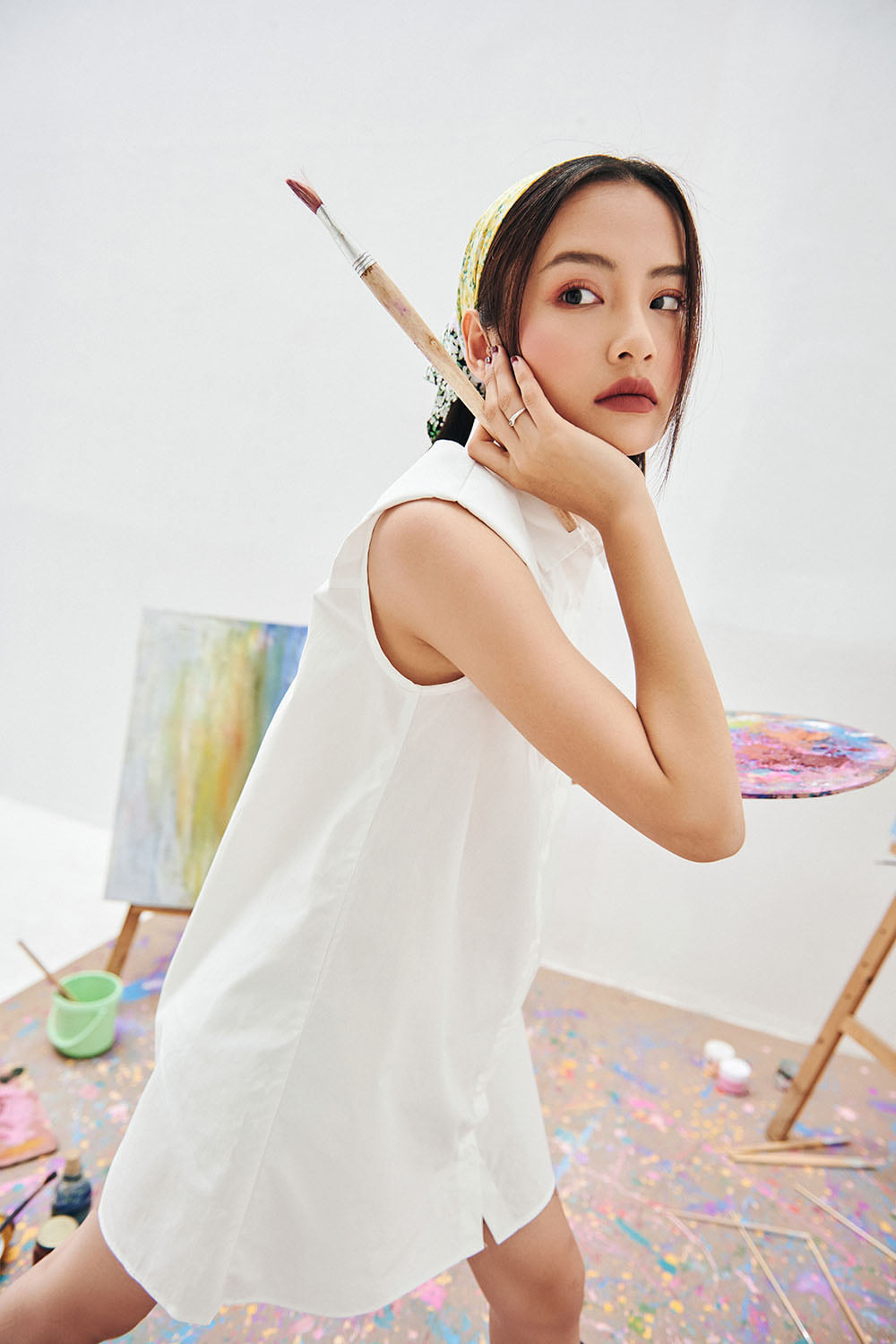 Đầm Sơ Mi Cotton, chất liệu cotton mềm mại, mỏng nhẹ. Phần trước ngực đính hạt tạo hình lá độc đáo. Có túi 2 bên hông, Mặc phối với quần short hoặc legging bên trong.