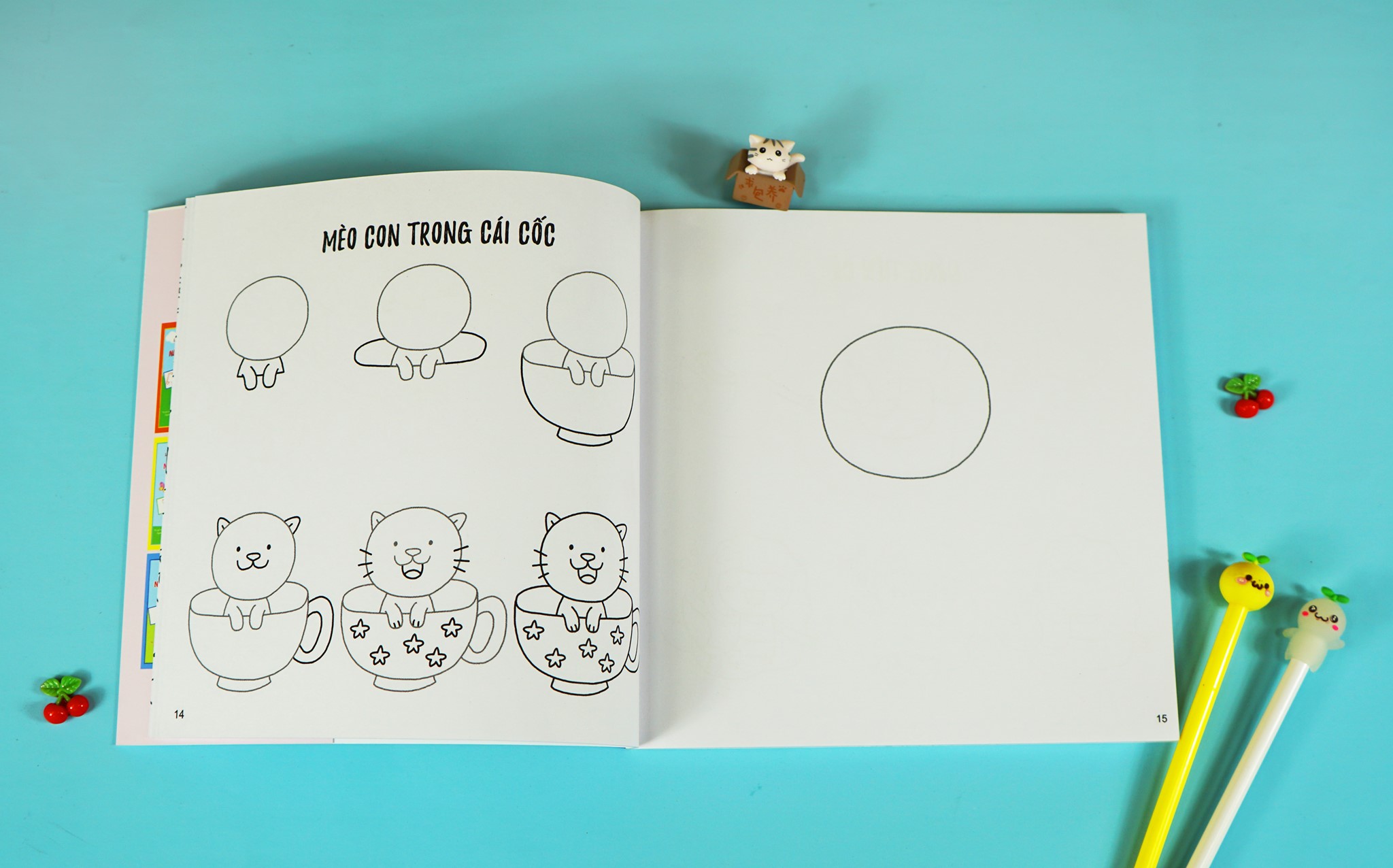 Em đã sẵn sàng trổ tài hội họa chỉ với 5 bước vẽ chưa? Từ chú tắc kè hoa sặc sỡ cho đến chú chim công đỏm dáng, từ chiếc thuyền đang dong buồm ra khơi cho đến ngọn hải đăng đang chiếu sáng rực rỡ, tất cả đều có trong Draw Kawaii in 5 simple steps - Vẽ theo phong cách Kawaii với 5 bước đơn giản. Ngoài hướng dẫn chi tiết, trong cuốn sách còn có một khoảng trống thật lớn để em thực hành ngay lập tức nữa đấy.