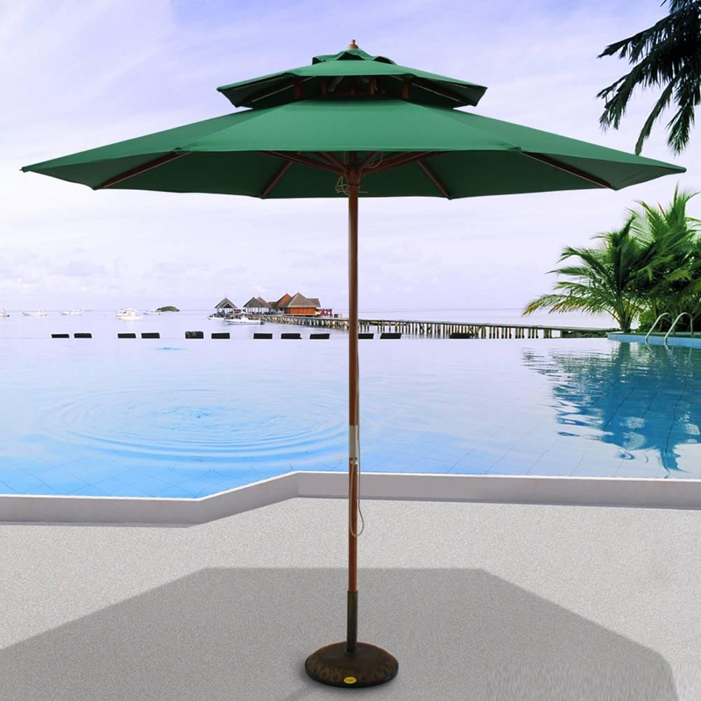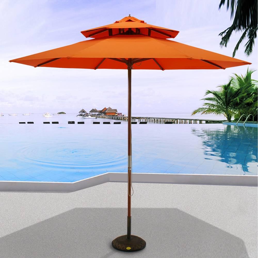 Dù gỗ 2 tầng có chiều cao 270mm, với tán dù rộng tới 3m được làm từ vải dù cao cấp, khung và thân được làm từ gỗ dầu Nam Phi nhập khẩu nên có khả năng chịu mưa nắng tuyệt vời, gia công sắc xảo, đáp ứng các tiêu chuẩn xuất khẩu vào các thị trường khó tính như Nhật Bản, Hàn quốc... Chất gỗ dầy dặn, xử lý trơn nhẵn an toàn cho người dùng. Thiết kế xếp gọn tiện lợi, tỷ lệ cân đối, tạo nên kết cấu vô cùng chắc chắn, đảm bảo sử dụng lâu bền. Dù gỗ 2 tầng có thể kết hợp với các mẫu bàn ngoài trời để đặt ở ban công hoặc ngoài trời, phù hợp với những buổi cafe sáng hoặc trà chiều thư giãn, ngắm cảnh.